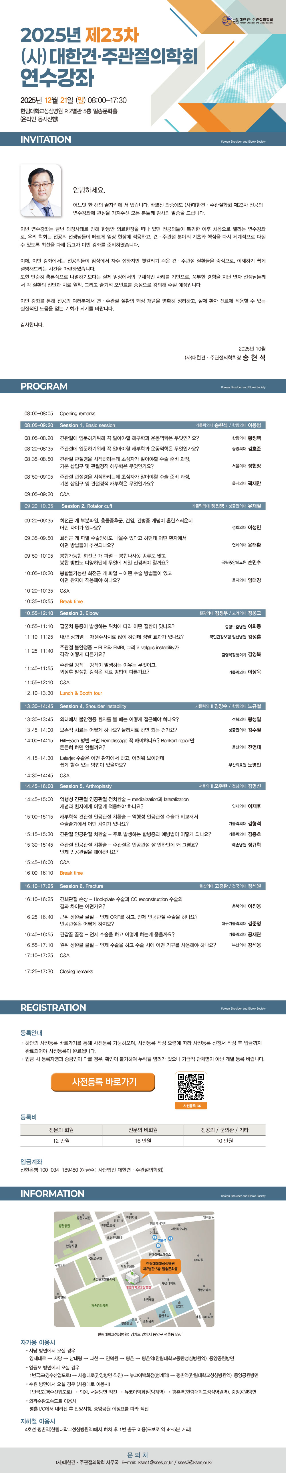 [대한견·주관절의학회] 제23차 연수강좌