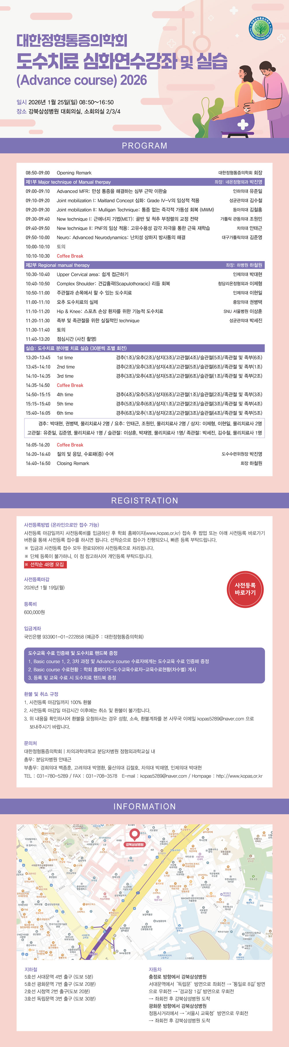 [대한정형통증의학회 도수치료 심화연수강좌 및 실습(Advance course) 2026] 안내