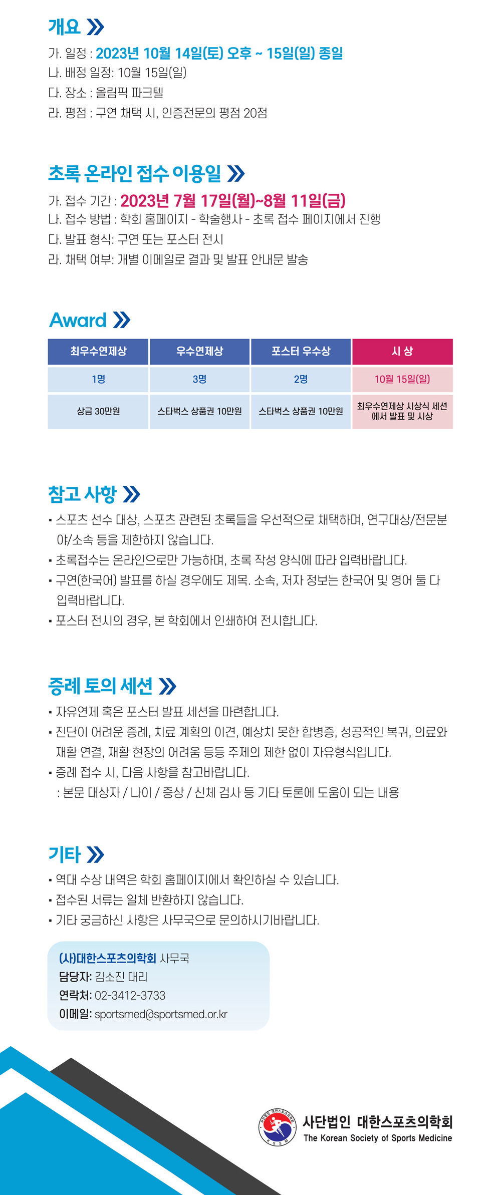 문의: 02-3412-3733 / sportsmed@sportsmed.or.kr