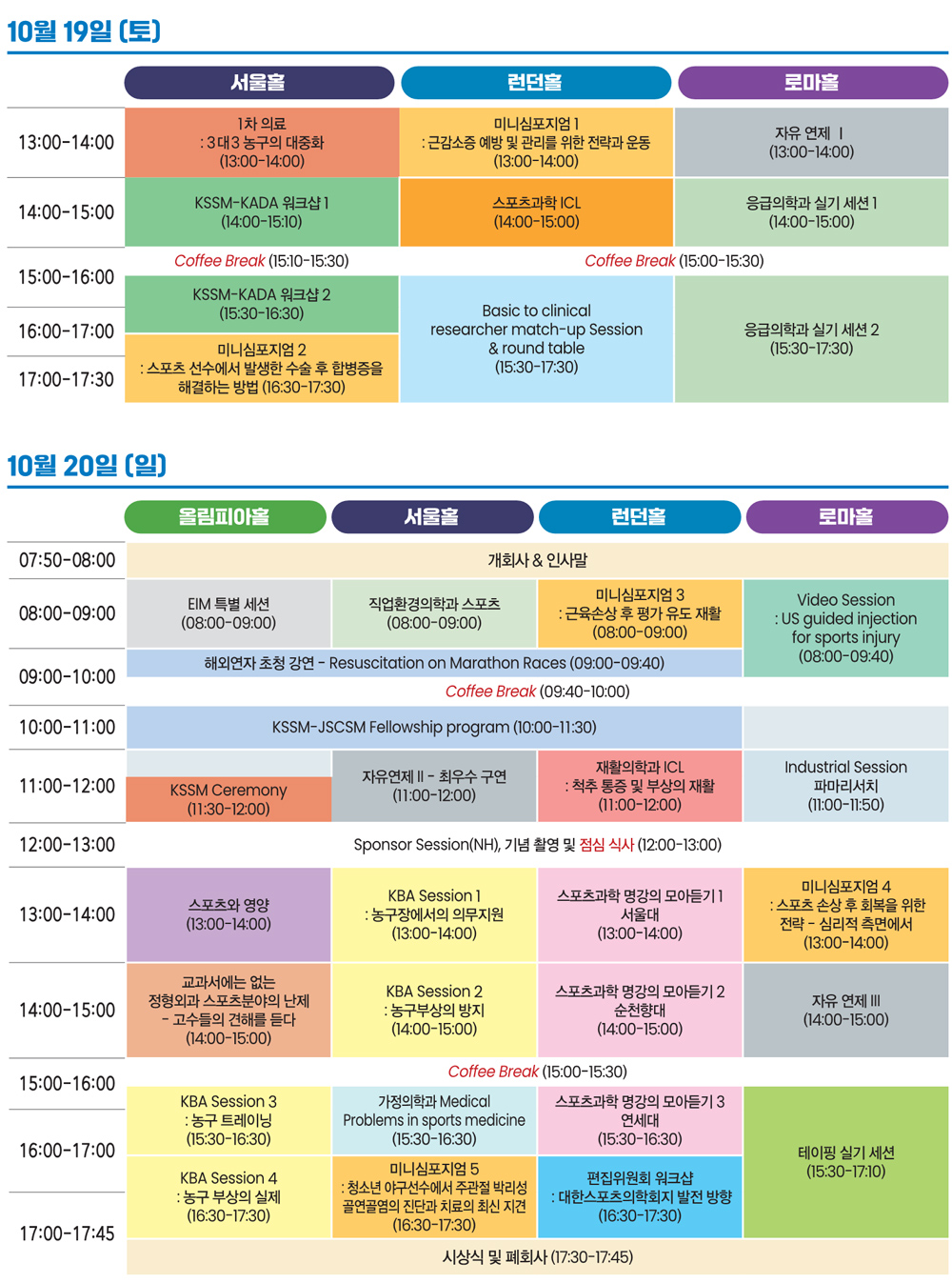 스포츠의학 분야 유일한 다학제 학회로서 자부심을 가지고, 스포츠의학을 선도하는 우리 학회는 이번 추계 학회에도 다양하고 풍성한 학술 모임을 준비하였습니다.